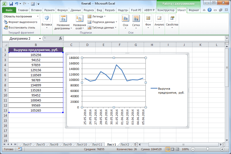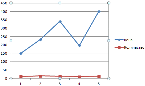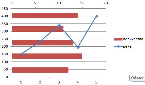 Часто возникает необходимость разместить на диаграмме несколько графиков. В этом нет трудностей, если у них одинаковая расчетная мера. Но иногда бывает необходимо объединить несколько графиков с разными расчетными показателями, например, чтобы показать зависимость одних данных от других. Это делается следующим образом.