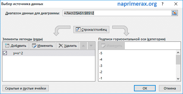 Как построить график в Excel – Выбор источника данных