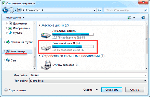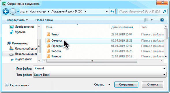 В примечании. Многие пользователи записывают свои электронные таблицы в папку «Документы». Но хранить в нем важные данные не рекомендую, так как это ненадежно. Лучше записывать на локальный диск D или аналогичный (кроме диска C). Подробнее читайте в этом руководстве.