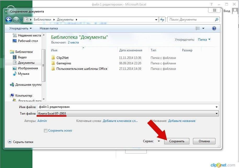 Как сохранить документ Excel 2013 в формате Microsoft Excel 97-2003
