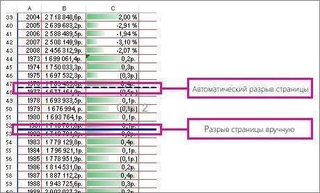Примечание. При перемещении автоматического разрыва страницы он вставляется вручную.