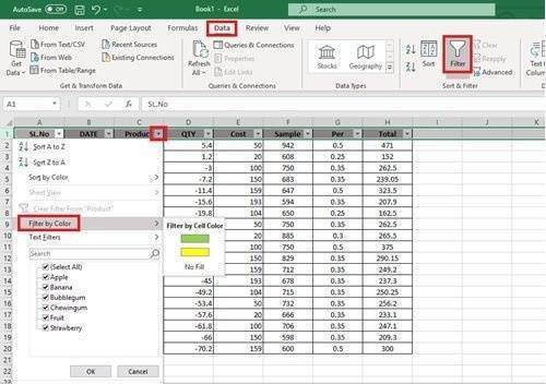 Excel предлагает этот удивительный вариант фильтра, который позволяет пользователям сортировать данные по-разному, и сортировка по цвету ячеек является одним из них. Это удаляет все столбцы, содержащие определенный цвет фона.