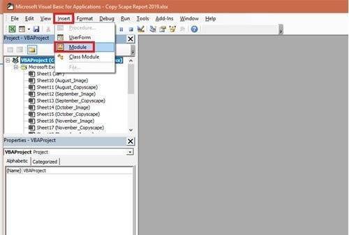 4] Перейдите в строку меню и выберите «Вставить> Модуль‘.