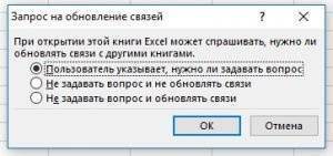 - Запрос на обновление ссылки: сообщает программе, следует ли обновлять данные при открытии файла