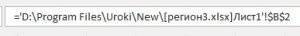 Внешняя ссылка имеет специфический вид: имя файла в квадратных скобках, имя листа, восклицательный знак, координаты ячейки: