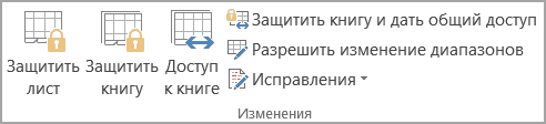 На вкладке Обзор в группе Изменения обратите внимание на следующие параметры безопасности: