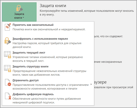 Чтобы настроить другие параметры безопасности, выберите «Файл»> «Безопасность книги.