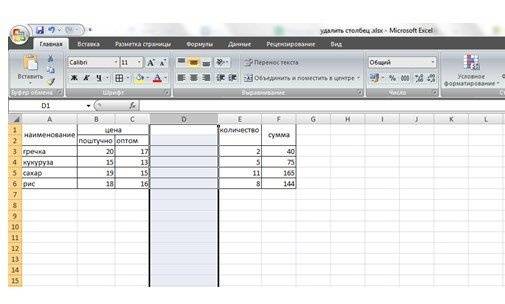 В нашем случае заголовок таблицы состоит из двух строк. Во всех столбцах, кроме «Цена», две ячейки объединены в одну строку за строкой. В столбце «Цена» в первой строке ячейки объединены по столбцам: одна состоит из ячеек B1 и C1. Если вы удалите столбец B, «Цена» также будет удалена, а верхняя строка останется пустой.